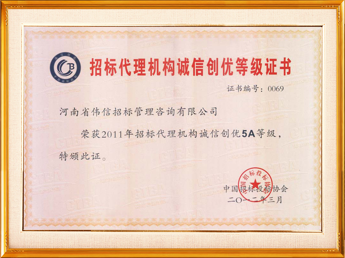 2012年招標(biāo)代理誠實守信單位