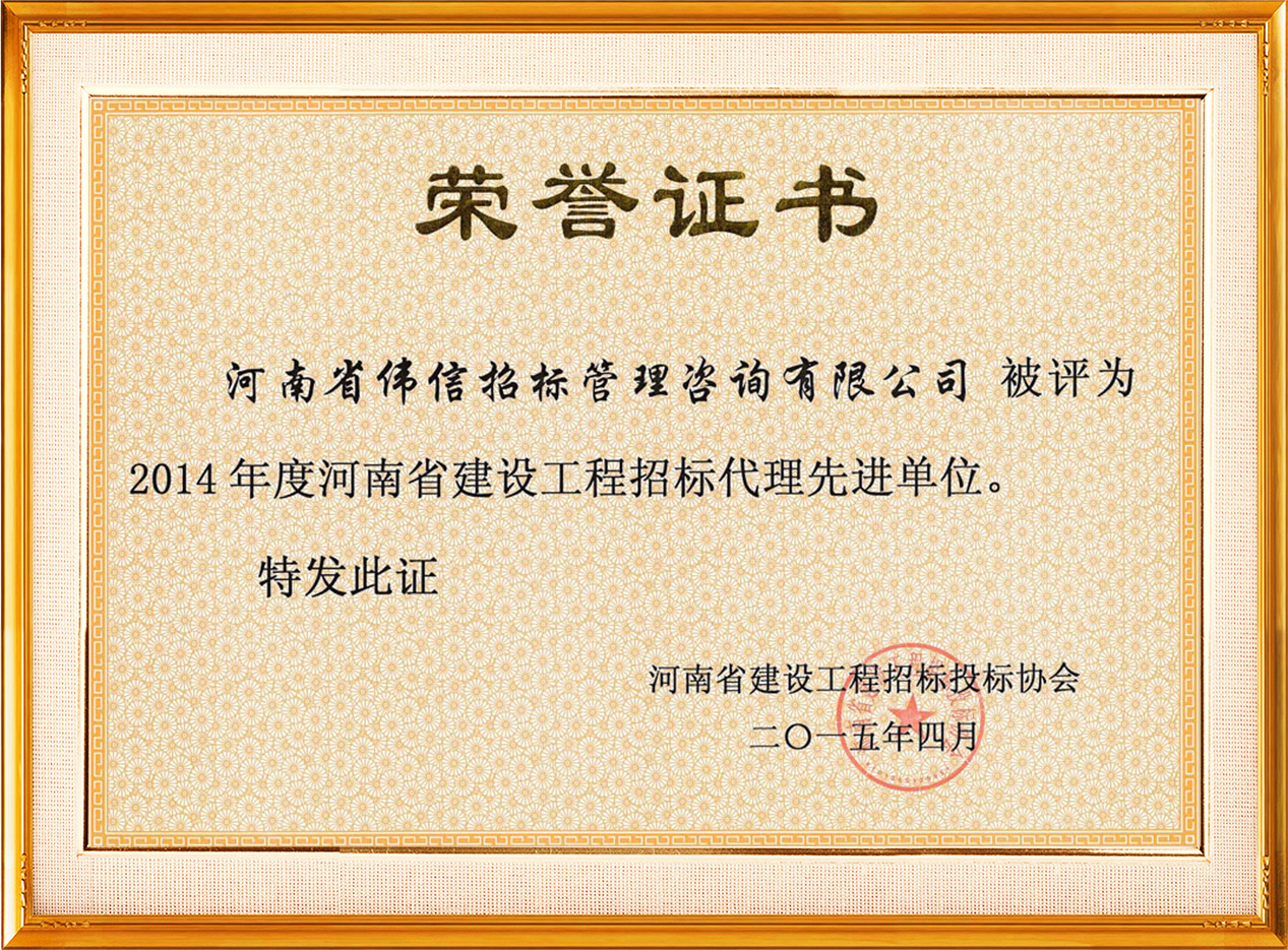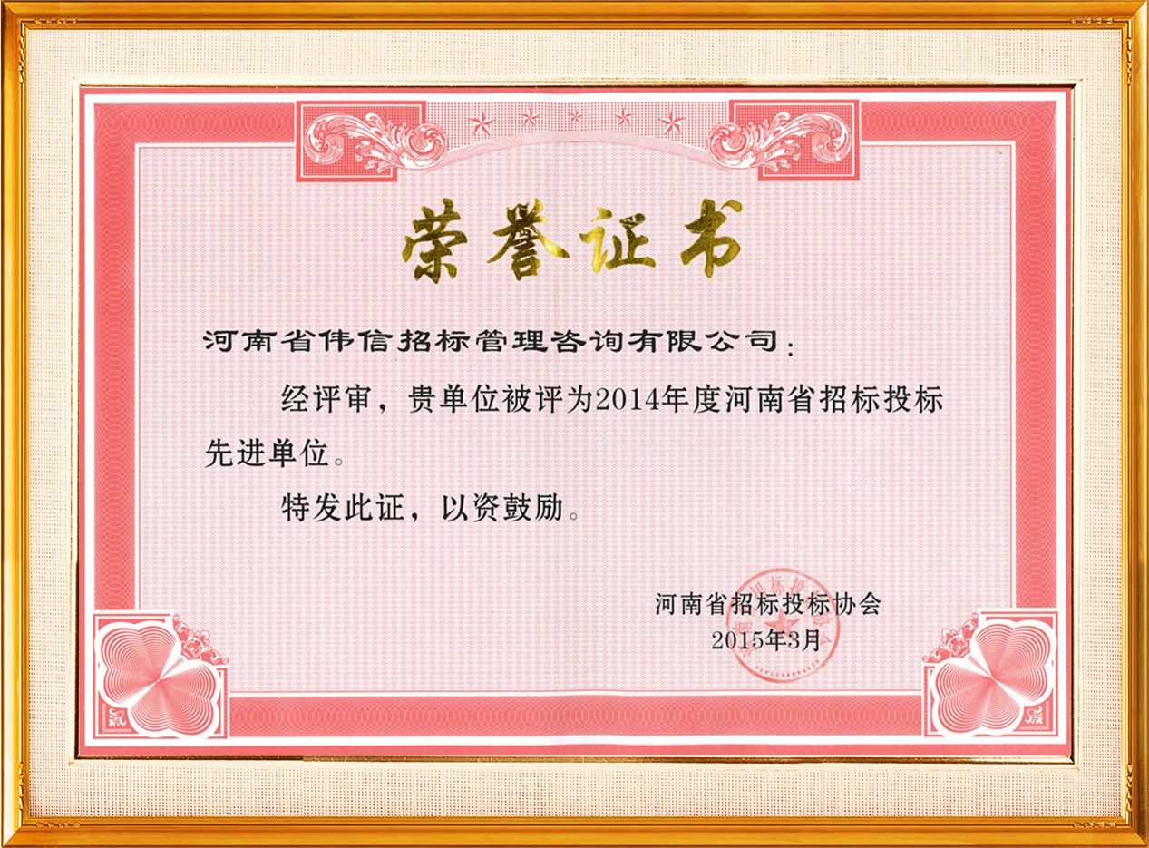 2014年招標(biāo)投標(biāo)先進單位