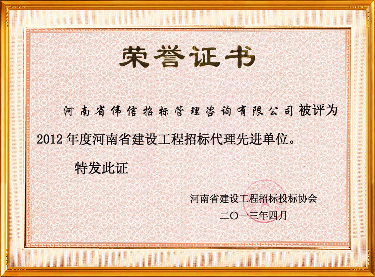 2012年招標(biāo)投標(biāo)先進單位