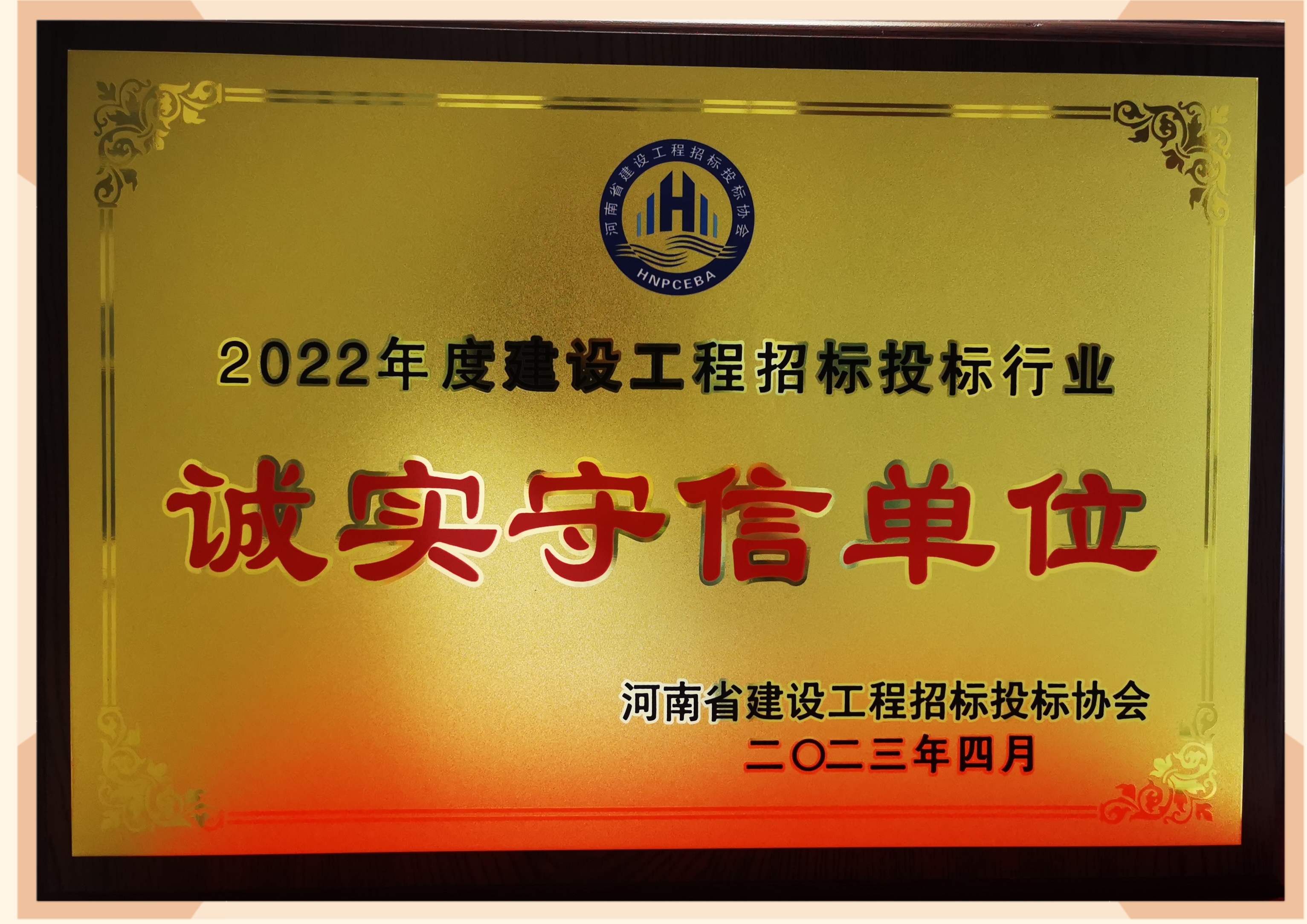 恭喜公司榮獲河南省建設(shè)工程投標(biāo)協(xié)會頒發(fā)的2022年度建設(shè)工程招標(biāo)投標(biāo)行業(yè)誠實守信單位
