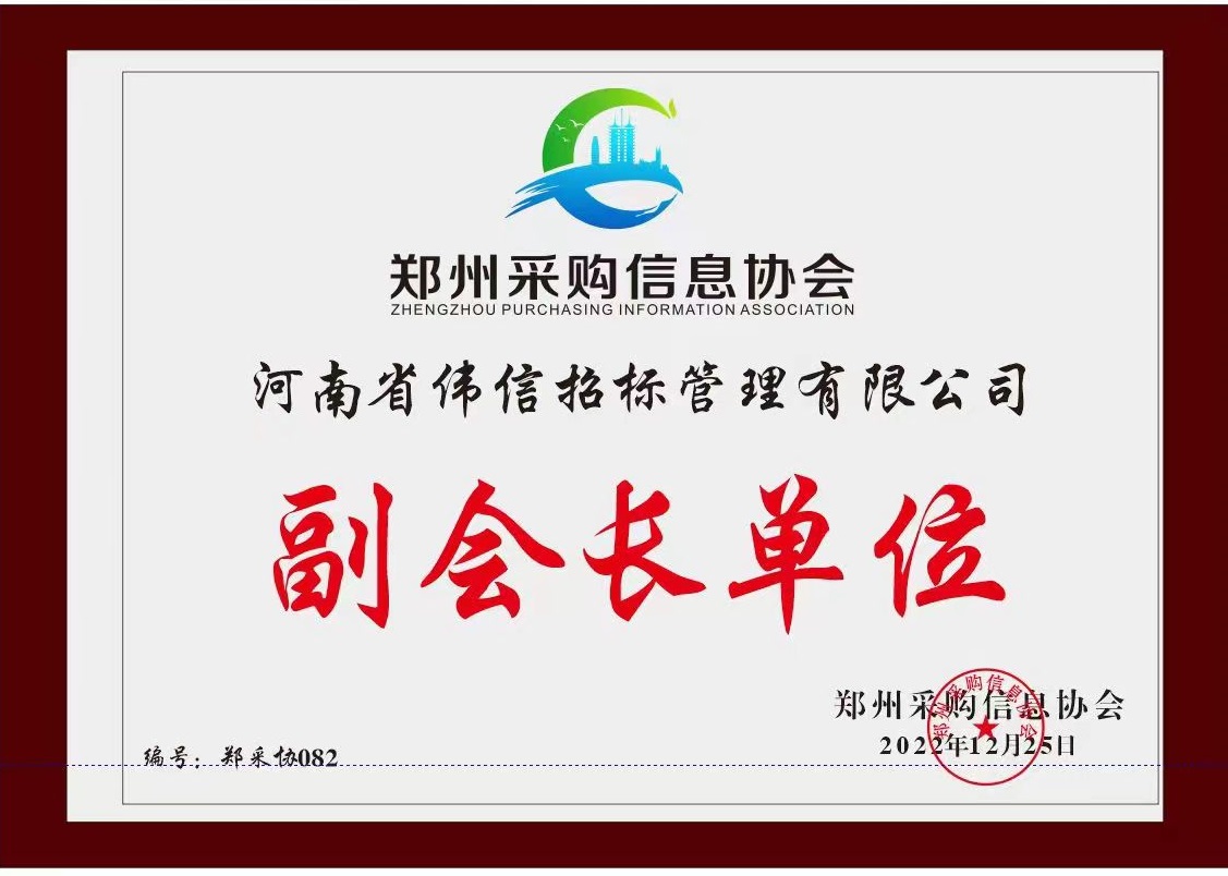 熱烈祝賀偉信招標(biāo)榮獲河南省招標(biāo)投標(biāo)協(xié)會頒發(fā)的2022年度先進會員單位