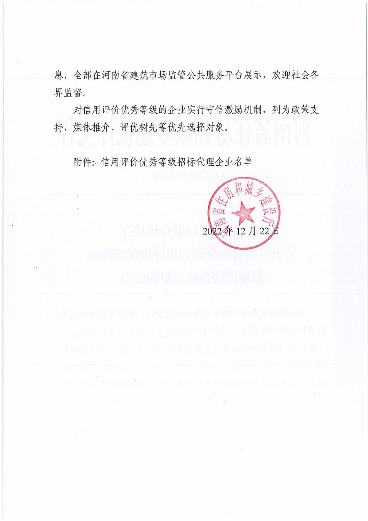 熱烈祝賀我公司榮獲河南省住房和城鄉(xiāng)建設廳首次全省信用評價優(yōu)秀等級 發(fā)布時間:2023-01-31 11:35:24 瀏覽量: 252發(fā)布人:張雁 上一篇:熱烈祝賀公司被鄭州市城鄉(xiāng)建設局評為的2022年招標代理先進單位2023-01-31 下一篇:開工大吉2023-01-31