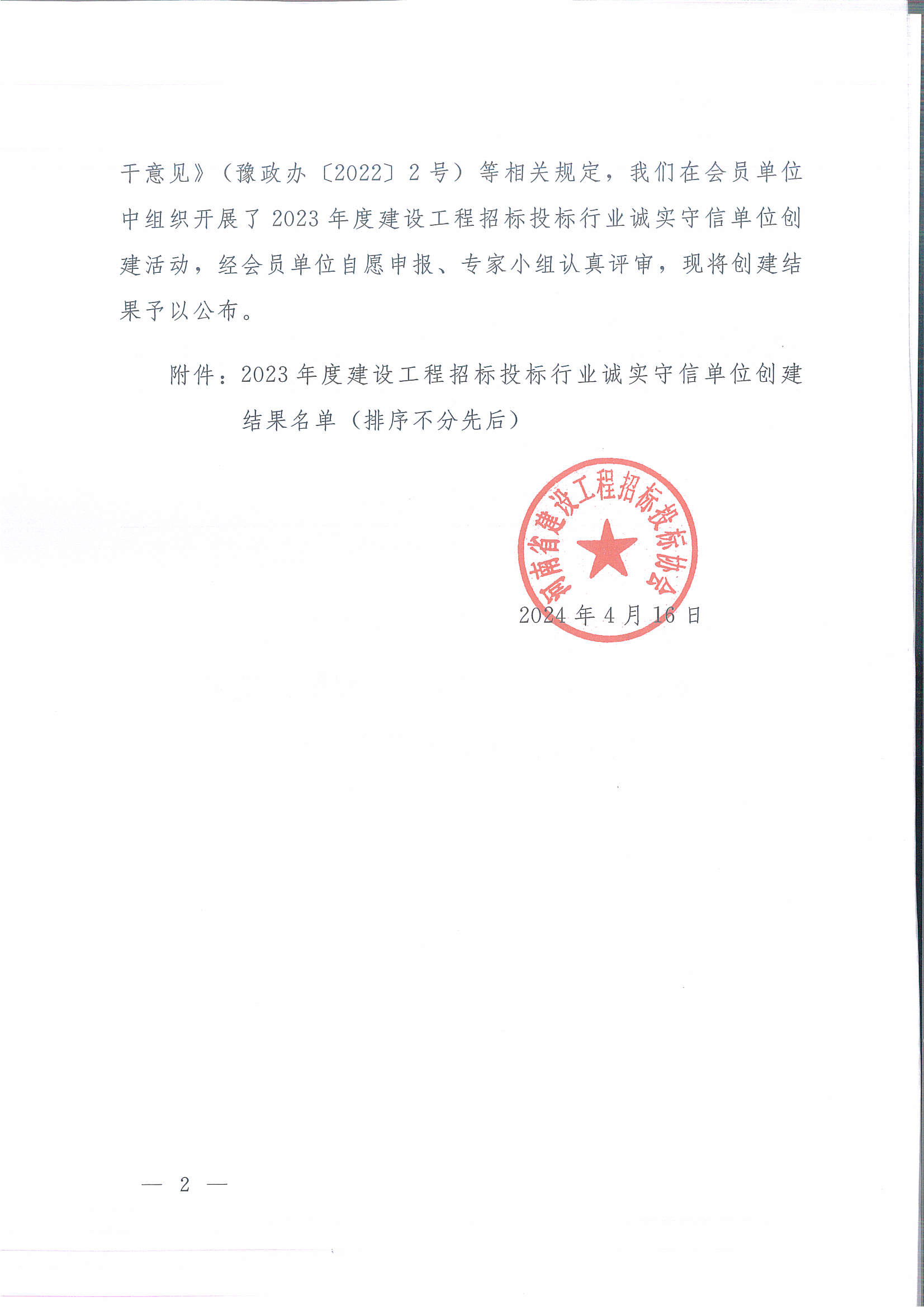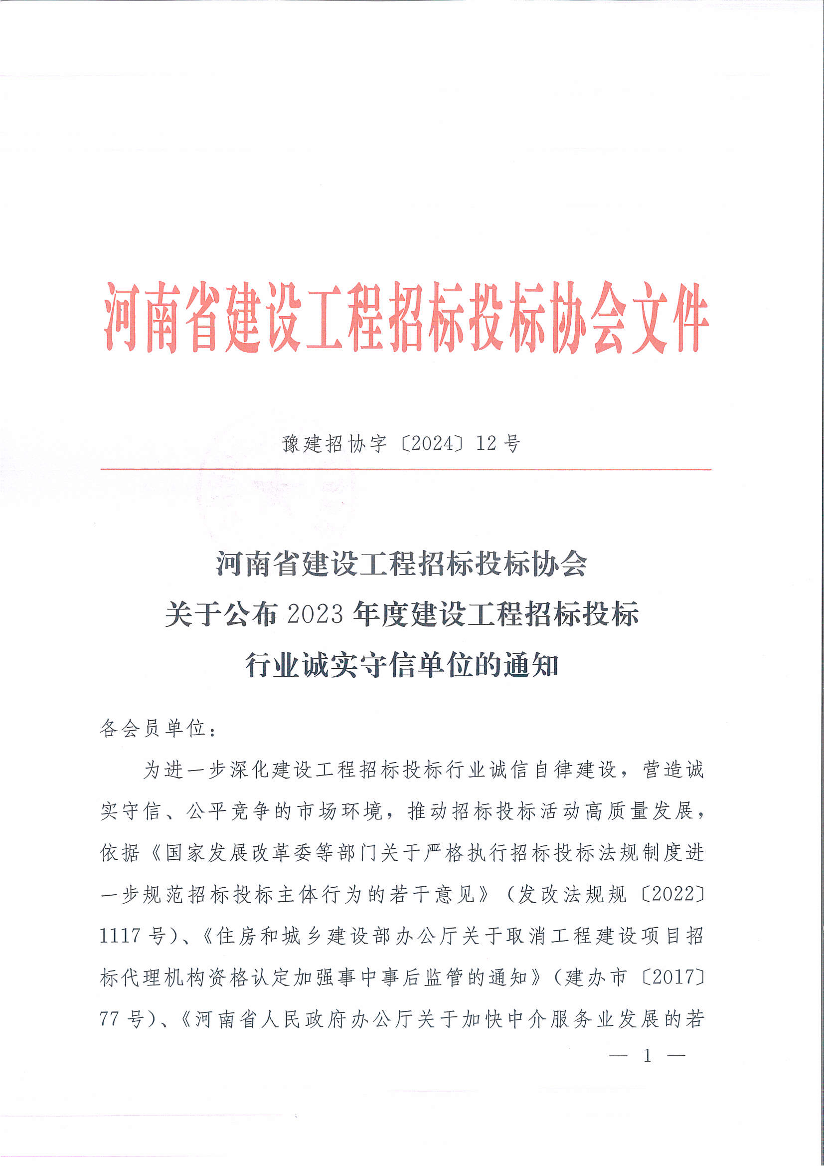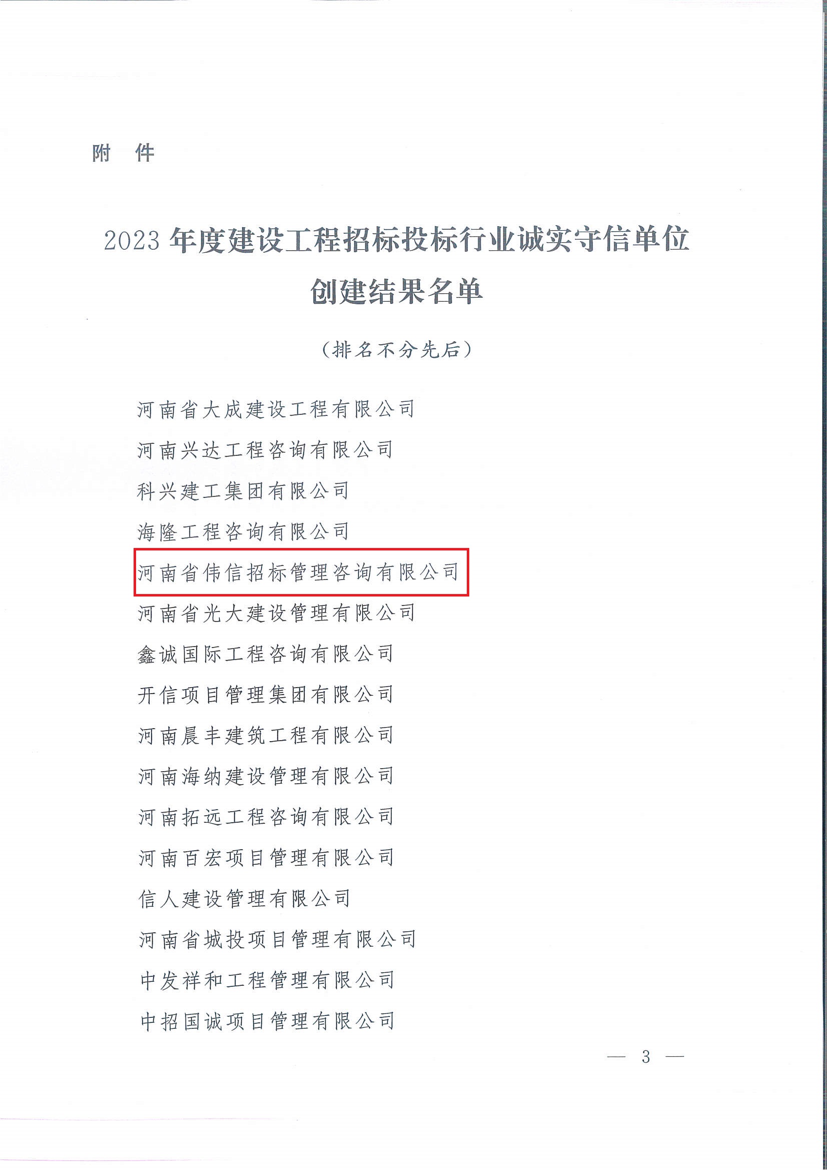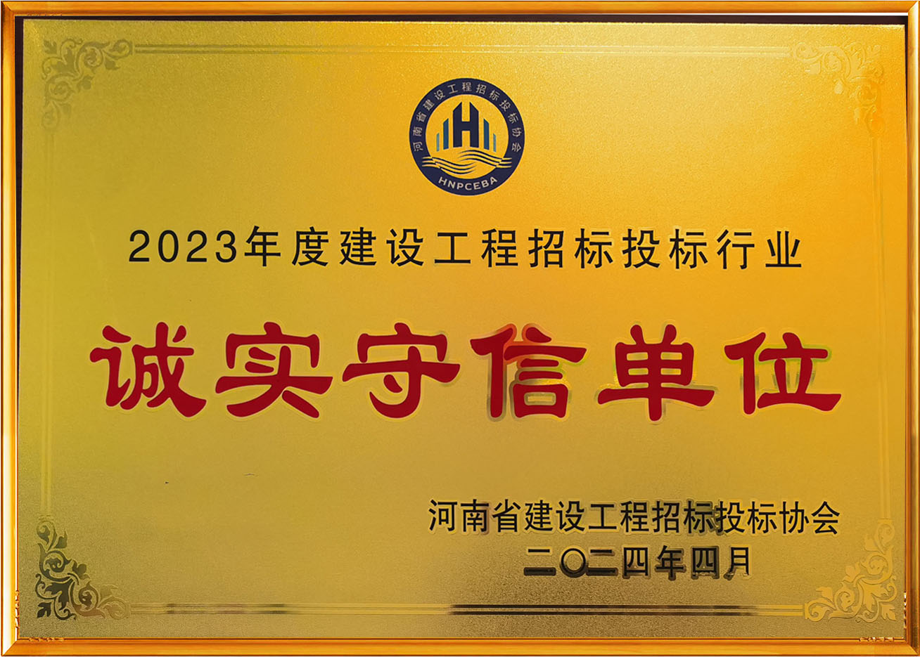 河南省偉信招標管理咨詢有限公司榮獲河南省建設工程招標投標協(xié)會頒發(fā)的2023年度建設工程招標投標行業(yè)誠實守信單位